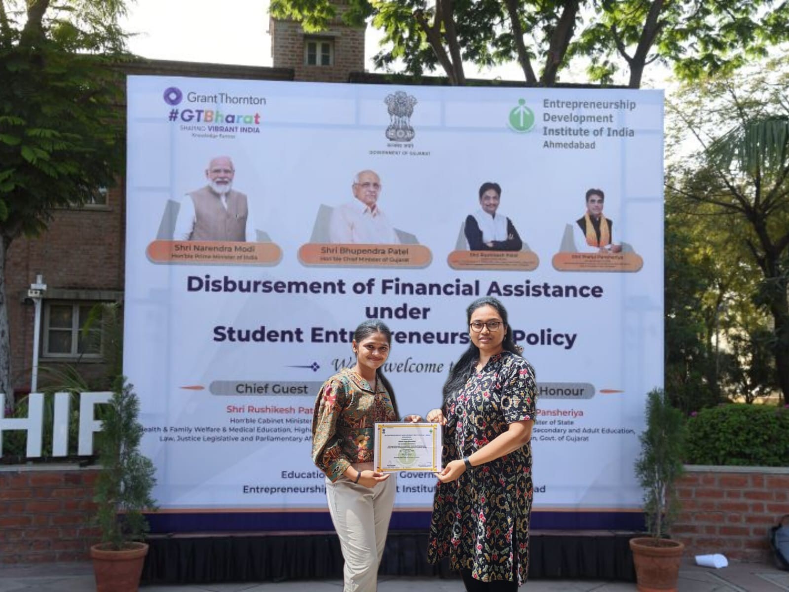 - Ms. Gayatri Malani (Student) was awarded ₹40000 from the Govt of Gujarat against her proposal to start her own business. This was done under the entrepreneurship policy of Govt of Gujarat.